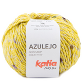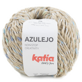 Fantasy yarn with a soft slub base dotted with subtle multicolor speckles. Knit a woman’s cable jumper with a high neckline or long jackets with reverse collars using Katia Azulejo. This versatile yarn is also perfect for making kid’s cardigans and sweaters thanks to its easy wash properties.