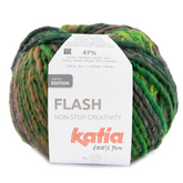 A thick patterned yarn to knit winter accessories: hats, scarves, ponchos… Complement your look with the most fun accessories and even stylish cardigans. Knit a hat with 8-mm needles and a single ball or a scarf with three balls of Flash